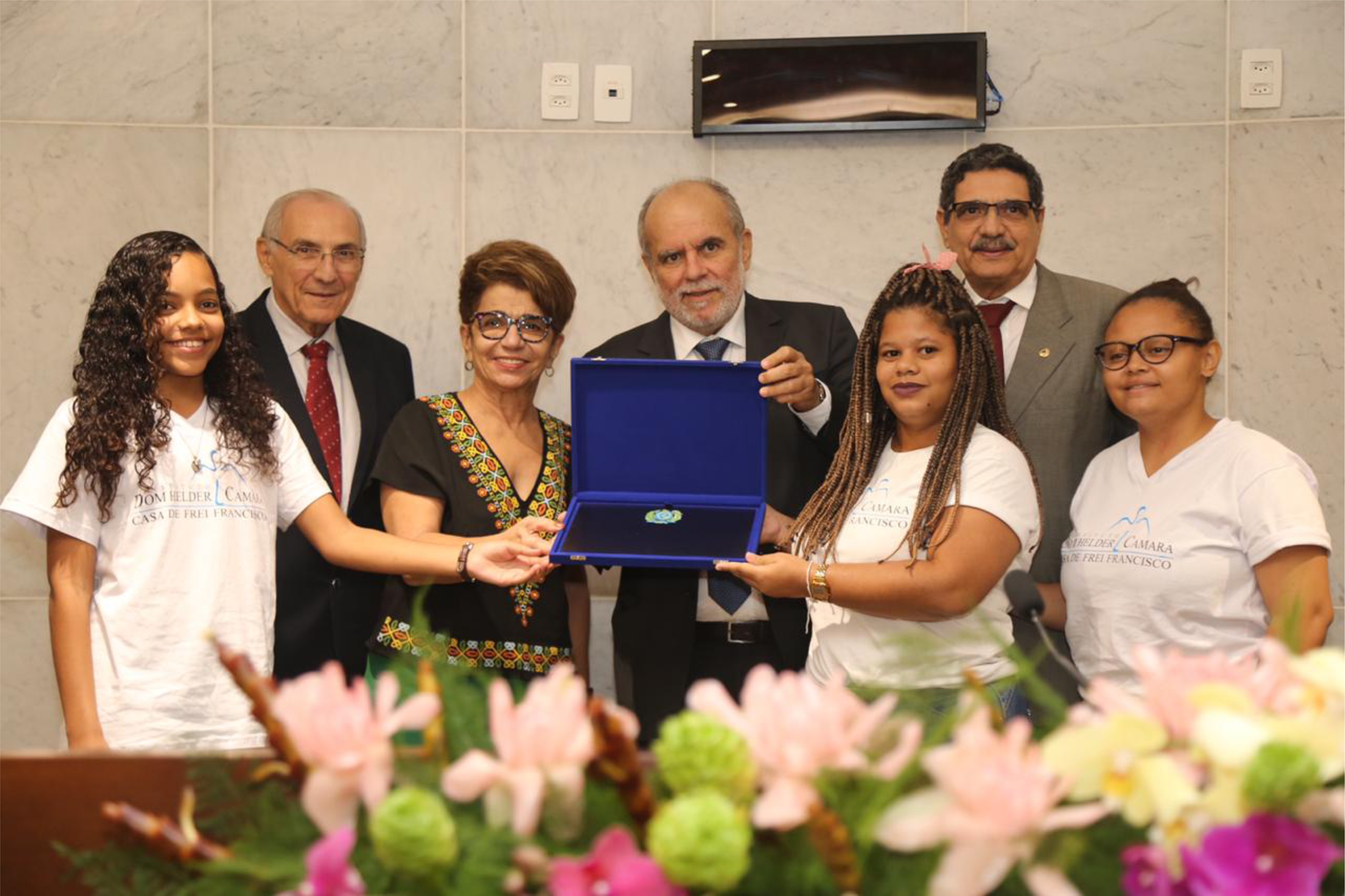 Em cerimônia marcada pela emoção, a Assembleia Legislativa de Pernambuco lembrou os vinte anos da morte de dom Helder Camara em sessão solene proposta pelo deputado Waldemar Borges. A homenagem, realizada na noite de ontem (21), foi presidida pelo deputado João Paulo e contou com a presença do bispo auxiliar da Arquidiocese de Olinda e Recife, dom Limacêdo Antônio da Silva (representando o arcebispo Fernando Saburido); da presidente do Conselho Curador do Instituto Dom Helder Camara (IDHeC) e conselheira do TCE Teresa Dueire; do diretor executivo da instituição, Antônio Carlos Maranhão; do secretário de Justiça e Direitos Humanos de Pernambuco, Pedro Eurico; da secretária de Cultura do Recife, Leda Alves, e do presidente da Fundarpe, Marcelo Canuto. Na plateia, além de deputados e representantes de entidades sociais, jovens atendidos pela Casa de Frei Francisco – projeto idealizado pelo próprio dom Helder Camara e que atende crianças e adolescentes carentes dos Coelhos, Coque e imediações.